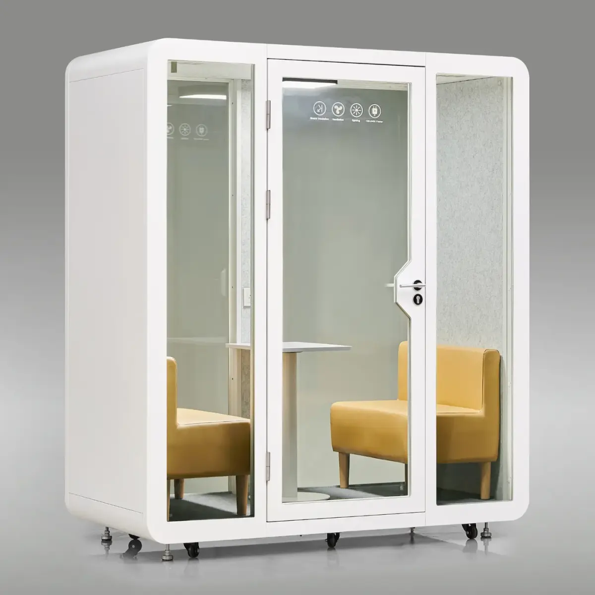 Our acoustic meeting pods are designed with multi-layer sound insulation technology, using top-grade materials such as acoustic foam, laminated glass, and sound-sealed joints. These elements work together to create a high-performance sound barrier that blocks out ambient office noise and prevents sound leakage. Whether you’re hosting sensitive HR meetings, video calls, or focused solo work sessions, our pods provide the peace and quiet you need—without building permanent walls.